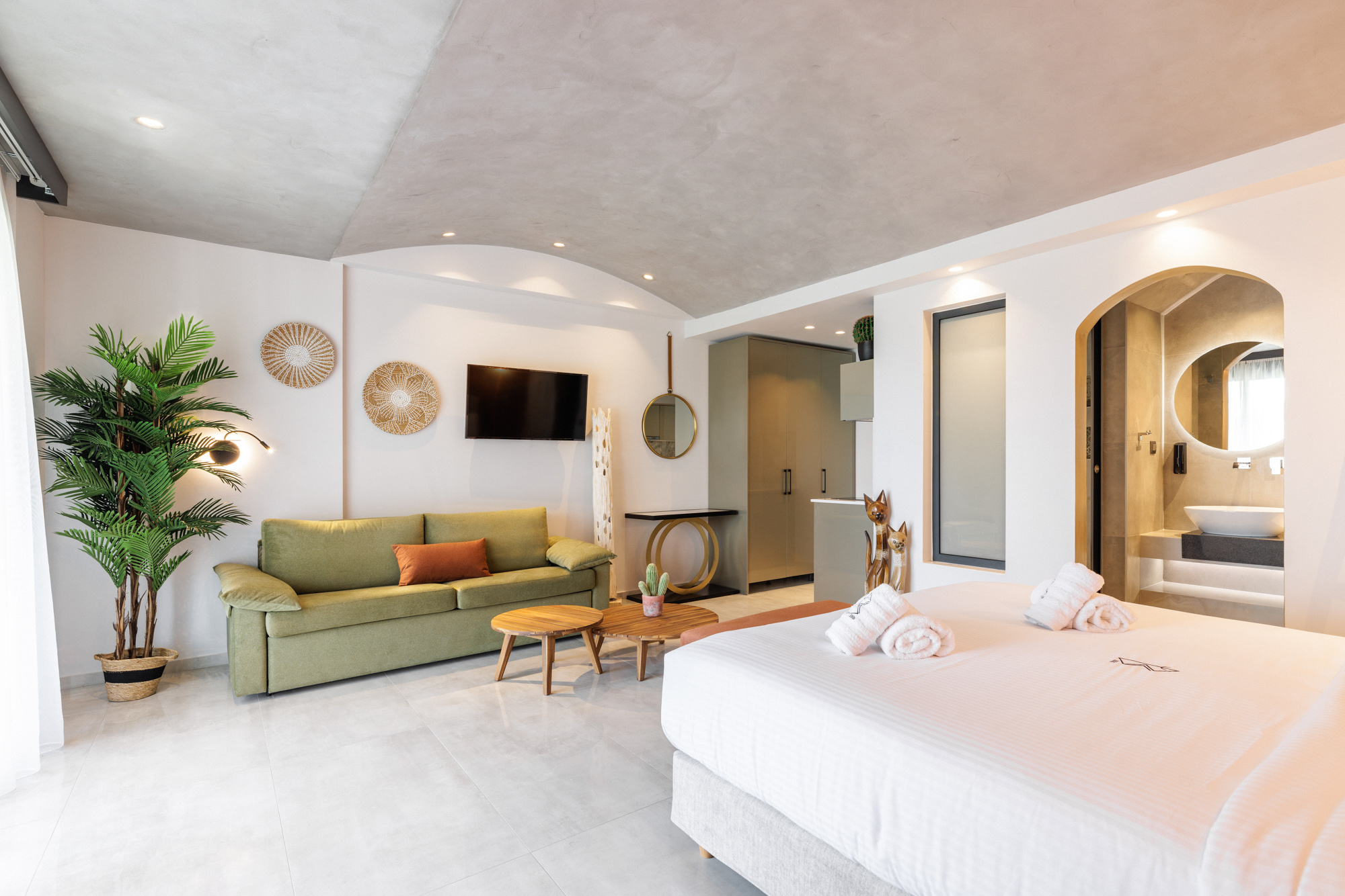 Είναι πλήρως εξοπλισμένο με παροχές υψηλής ποιότητας, όπως κρεβάτι king-size με οικολογικό Coco-mat και ιδιωτικό μπάνιο πλήρως εξοπλισμένο με γνωστά προϊόντα περιποίησης Nuxe.