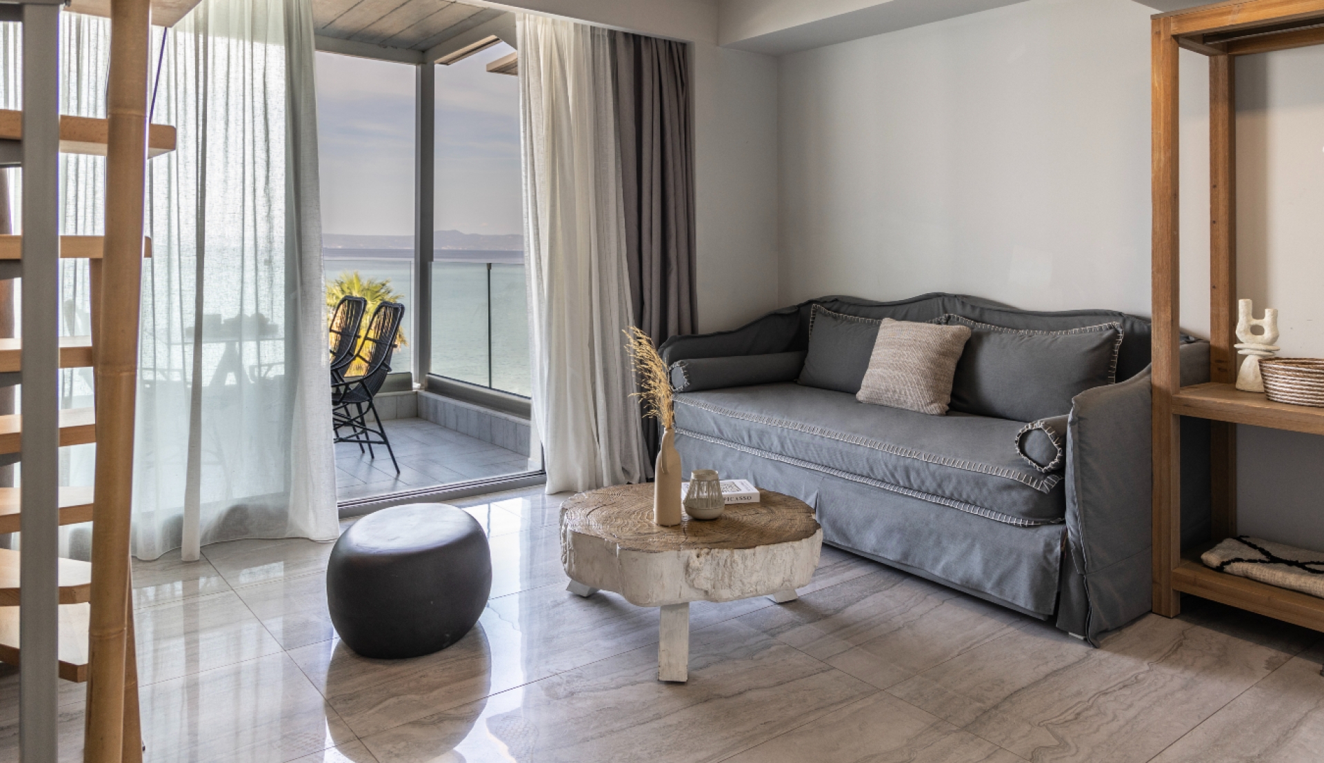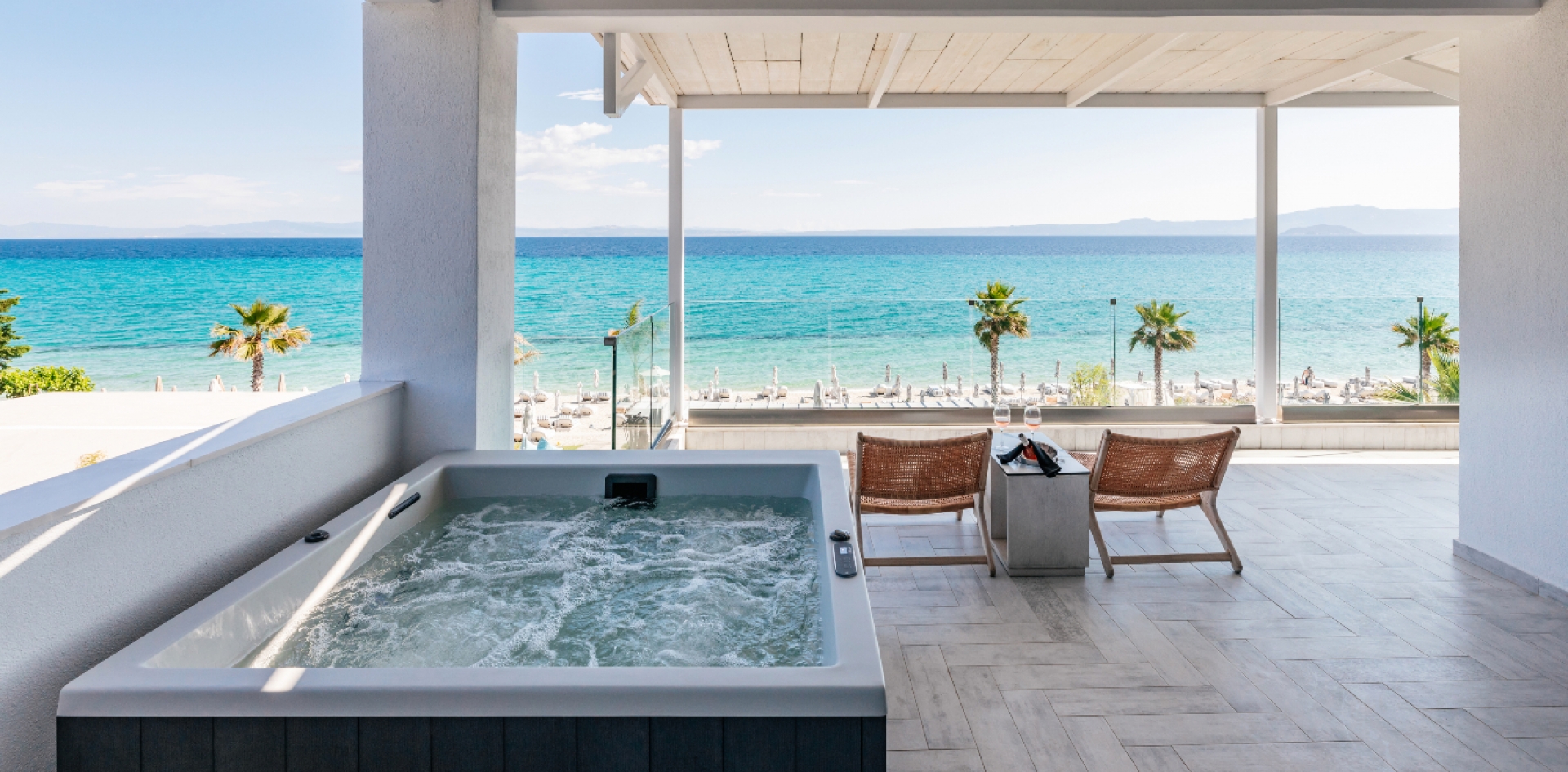 Με έμφαση στη μοναδικότητα, κάθε σουίτα του ξενοδοχείου μας είναι ξεχωριστά σχεδιασμένη και διακοσμημένη, αποπνέοντας τον δικό της χαρακτήρα. Εμπνευσμένες από τη minimal αισθητική και τις ατμοσφαιρικές πινελιές της Μέσης Ανατολής, οι 25 πολυτελείς σουίτες μας προσφέρουν απόλυτη γαλήνη και χαλάρωση, με φόντο τα καταγάλανα νερά της Χαλκιδικής.